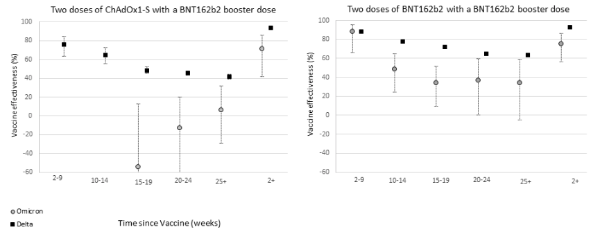 There are only two like-for-like comparisons possible: 2-9 weeks after your 2nd jab vs 3rd jab for AZ and Pfizer respectively, and they are completely inconsistent.
